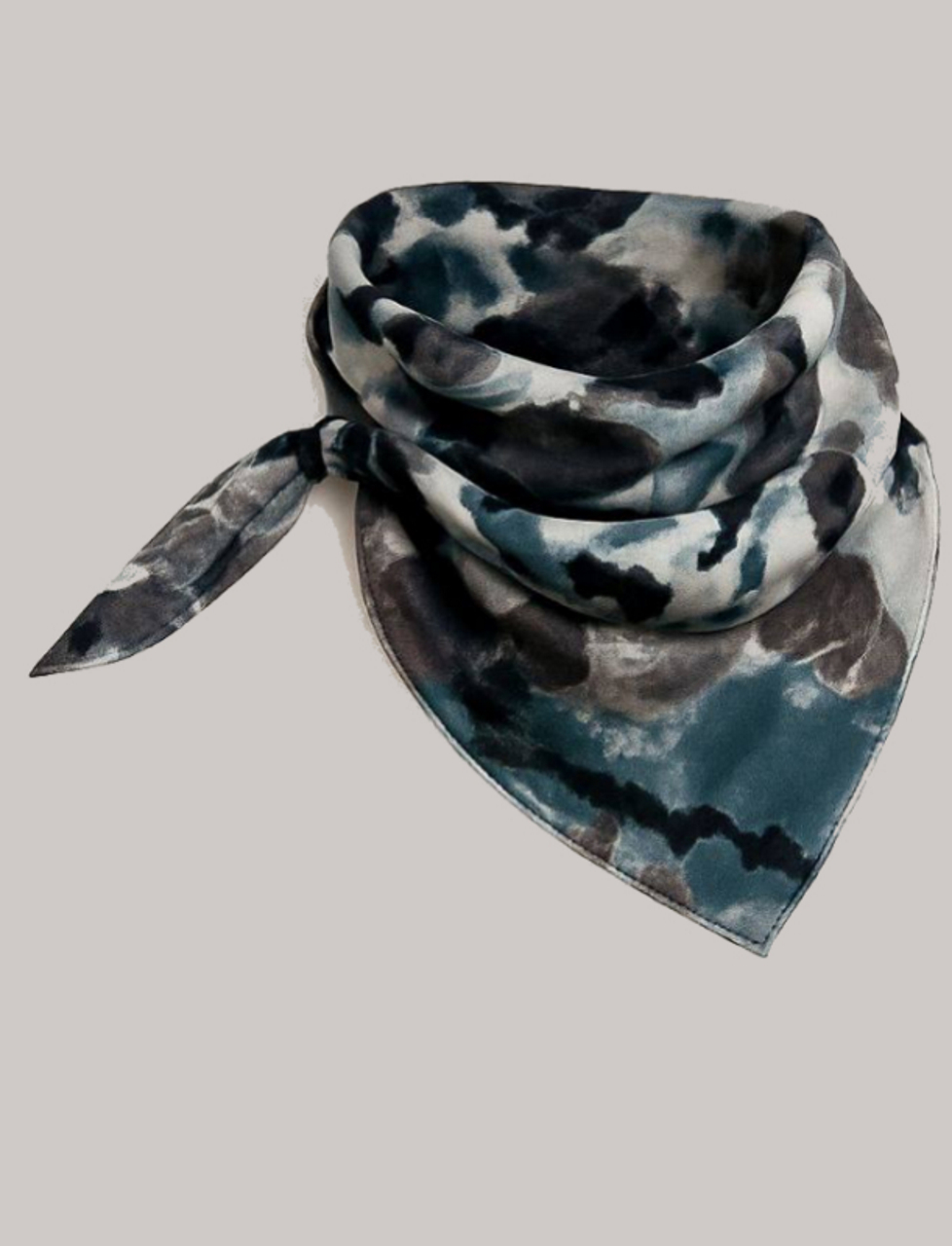 The “Sea Abstraction” scarf is made of 100% viscose — a flowing, soft-to-the-touch fabric.