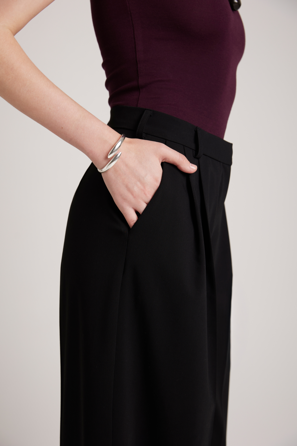 The “Out of time” trousers are made from a high-quality blended fabric. The fabric drapes beautifully while remaining structured.